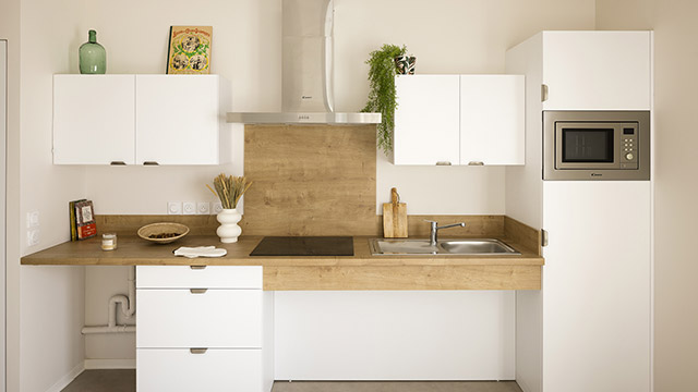 - Une ergonomie de l’appartement pensé pour le maintien de l’autonomie (cuisine à hauteur variable selon les appartements, douche à l’italienne, portes à galandages…)